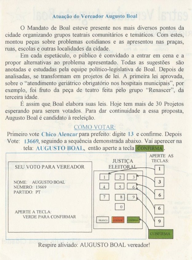 Em fotos, campanha para reeleição em 1996, com explicação sobre o Teatro Legislativo.