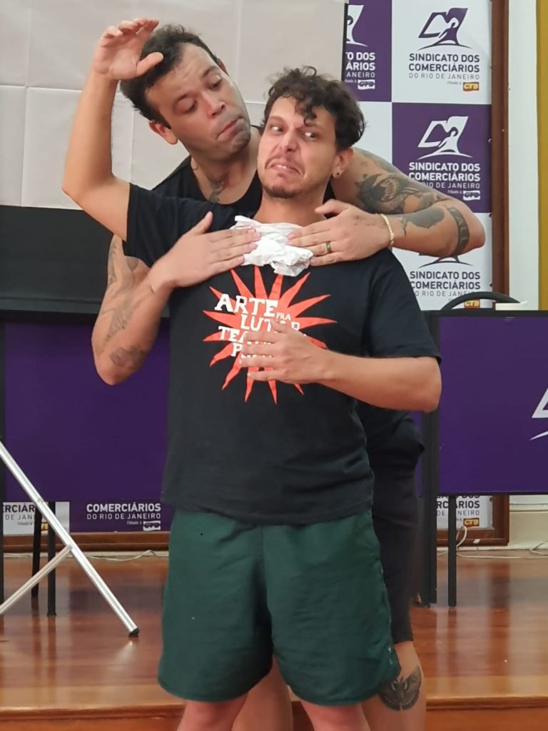 A oficina terminou, mas deixou aberta a possibilidade de continuidade. Uma circulação de espetáculos, visitas entre Rio e São Paulo, fortalecimento de redes. Um teatro que se faz em diálogo com territórios, com espaços públicos, com a luta.