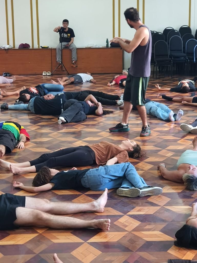 Os exercícios conduziram os participantes à experiência do extra cotidiano, um estado em que o corpo sai dos automatismos do dia a dia e passa a agir a partir de outras dinâmicas. A proposta era abandonar gestos habituais e investigar novas qualidades de movimento. Com muito entusiasmo, a integrante do Núcleo Centro da ETP, Marisa Brandão destacou o impacto desse processo. Para ela, “tirar o corpo do cotidiano é lembrar das capacidades do corpo e da mente humana, que a repetição do dia a dia nos limita”.